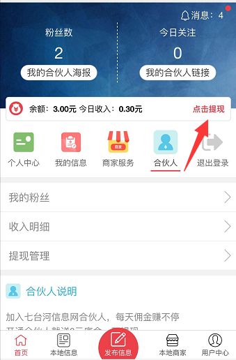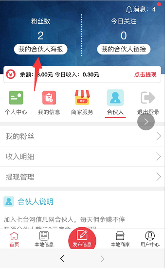 如何开通合伙人直接登录你的账号,没有账号也可以直接使用微信登录点击合伙人点击开通合伙人开通后直接送3元底金如何赚佣金点击我的合伙人海报,把海报保存到手机,分享到朋友圈或好友好友扫码(长按识别二维码)关